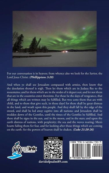 For our conversation is in heaven; from whence also we look for the Savior, the Lord Jesus Christ: (Phillippians 3:20) And when ye shall see Jerusalem compassed with armies, then know that the desolation thereof is nigh. Then let them which are in Judaea flee to the mountains; and let them which are in the midst of it depart out; and let not them that are in the countries enter thereinto. For these be the days of vengeance, that all things which are written may be fulfilled. But woe unto them that are with child, and to them that give suck, in those days! for there shall be great distress in the land, and wrath upon this people. And they shall fall by the edge of the sword, and shall be led away captive into all nations: and Jerusalem shall be trodden down of the Gentiles, until the times of the Gentiles be fulfilled. And there shall be signs in the sun, and in the moon, and in the stars; and upon the earth distress of nations, with perplexity; the sea and the waves roaring; Men's hearts failing them for fear, and for looking after those things which are coming on the earth: for the powers of heaven shall be shaken. (Luke 21:20-26)