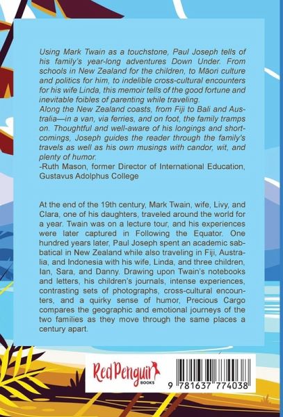 At the end of the 19th century, Mark Twain, wife, Livy, and Clara, one of his daughters, traveled around the world for a year. Twain was on a lecture tour, and his experiences were later captured in Following the Equator. One hundred years later, Paul Joseph spent an academic sabbatical in New Zealand while also traveling in Fiji, Australia, and Indonesia with his wife, Linda, and three children, Ian, Sara, and Danny. Drawing upon Twain's notebooks and letters, his children's journals, intense experiences, contrasting sets of photographs, cross-cultural encounters, and a quirky sense of humor, Precious Cargo compares the geographic and emotional journeys of the two families as they move through the same places a century apart.