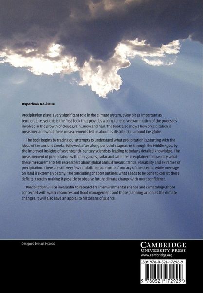 Precipitation plays a significant role in the climate system, and this book is the first to provide a comprehensive examination of the processes involved in the generation of clouds, rain, snow and hail; how precipitation is measured; how its distribution has changed over time; and how we still need to make improvements to the way precipitation is measured. It traces our attempts to understand what clouds are, from ancient Greeks to the present day. It also discusses developments in the measurement of precipitation, from rain gauges to satellite techniques, and how these measurements have enabled researchers to estimate global trends, totals, variability and extremes of precipitation. This will be a valuable and fascinating reference for academic researchers in the fields of environmental science and climatology. It will also be of great interest to professionals in water resource and flood management.