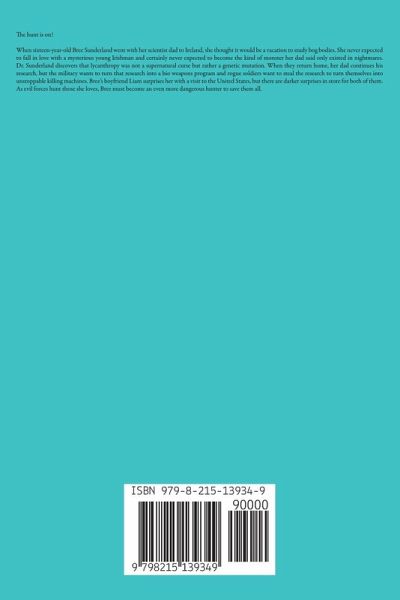 The hunt is on! When sixteen-year-old Bree Sunderland went with her scientist dad to Ireland, she thought it would be a vacation to study bog bodies. She never expected to fall in love with a mysterious young Irishman and certainly never expected to become the kind of monster her dad said only existed in nightmares. Dr. Sunderland discovers that lycanthropy was not a supernatural curse but rather a genetic mutation. When they return home, her dad continues his research, but the military wants to turn that research into a bio weapons program and rogue soldiers want to steal the research to turn themselves into unstoppable killing machines. Bree's boyfriend Liam surprises her with a visit to the United States, but there are darker surprises in store for both of them. As evil forces hunt those she loves, Bree must become an even more dangerous hunter to save them all.