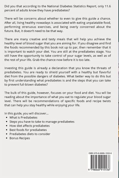 Welcome to a world where the prevalence of prediabetes is on the rise, and the prediabetes diet has emerged as a crucial tool for effectively managing this condition. When an individual's blood sugar level is slightly elevated but not yet in the range of type-2 diabetes, they are often diagnosed with prediabetes. Shockingly, nearly 84 million adults in the United States are estimated to have prediabetes, with a significant number unaware of their condition. Prediabetes serves as a warning signal from the body, indicating the urgent need for lifestyle changes to stave off the development of type 2 diabetes. The good news is that, with the right dietary and lifestyle adjustments, prediabetes can be reversed. The prediabetes diet is a customized plan designed to meet each individual's unique needs and preferences. However, it generally revolves around the consumption of whole foods rich in fiber while minimizing added sugars. Within the pages of this comprehensive guide, we will delve into the following topics: ¿ Exploring Prediabetes: Understand the ins and outs of prediabetes, its significance, and the risks it carries. ¿ Unveiling Symptoms and Causes: Discover the telltale signs and underlying causes of prediabetes. ¿ Embracing Lifestyle Changes: Learn how to effectively manage prediabetes through alterations in your daily routine. ¿ Navigating Medical Treatments: Explore medical interventions and treatments available for prediabetes. ¿ The Prediabetes Diet: Delve into the heart of prediabetes management with a balanced and tailored diet. ¿ Principles of the Prediabetes Diet: Gain insight into the core principles guiding this dietary approach. ¿ Assessing Pros and Cons: Understand the advantages and potential limitations of the prediabetes diet. ¿ Getting Started: A step-by-step guide to initiating the prediabetes diet in your life. ¿ Foods to Savor and Avoid: A comprehensive list of recommended foods and those best left off your plate. ¿ Sample Meal Plans and Delicious Recipes: Practical meal plans and mouthwatering recipes to make your prediabetes diet journey enjoyable and nutritious. Embark on this enlightening journey to discover the keys to managing prediabetes effectively. Whether you have been diagnosed with prediabetes or are simply looking to embrace a healthier lifestyle, this book is your indispensable companion in the quest for better health and a brighter future.
