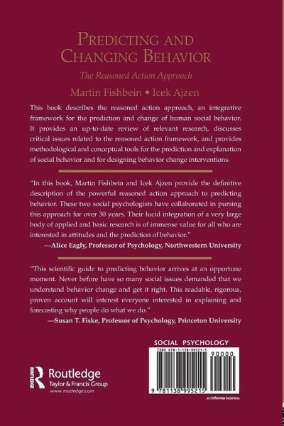 "In this book, Martin Fishbein and Icek Ajzen provide the definitive description of the powerful reasoned action approach to predicting behavior. These two social psychologists have collaborated in pursing this approach for over 30 years. Their lucid integration of a very large body of applied and basic research is of immense value for all who are interested in attitudes and the prediction of behavior." - Alice Eagly, Professor of Psychology, Northwestern University