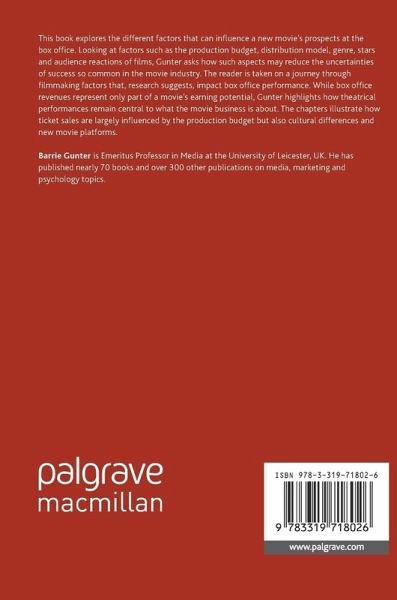 This book explores the different factors that can influence a new movie's prospects at the box office. Looking at factors such as the production budget, distribution model, genre, stars and audience reactions of films, Gunter asks how such aspects may reduce the uncertainties of success so common in the movie industry. The reader is taken on a journey through filmmaking factors that, research suggests, impact box office performance. While box office revenues represent only part of a movie's earning potential, Gunter highlights how theatrical performances remain central to what the movie business is about. The chapters illustrate how ticket sales are largely influenced by the production budget but also cultural differences and new movie platforms.