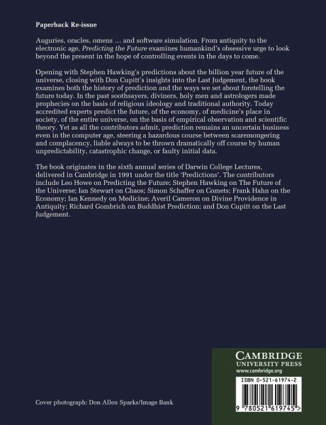 Auguries, oracles, omens...and software simulation. From antiquity to the electronic age, Predicting the Future examines humankind's obsessive urge to look beyond the present in the hope of controlling events in the days to come. Opening with Stephen Hawking's predictions about the billion year future of the universe, closing with Don Cupitt's insights into the Last Judgement, the book examines both the history of prediction and the ways we set about foretelling the future today. In the past soothsayers, diviners, holy men and astrologers made prophecies on the basis of religious ideology and traditional authority. Today accredited experts predict the future, of the economy, of medicine's place in society, of the entire universe, on the basis of empirical observation and scientific theory. Yet as all the contributors admit, prediction remains an uncertain business even in the computer age, steering a hazardous course between scaremongering and complacency, liable always to be thrown dramatically off course by human unpredictability, catastrophic change, or faulty initial data. The book originates in the sixth annual series of Darwin College Lectures, delivered in Cambridge in 1991 under the title 'Predictions'. The contributors include Leo Howe on Predicting the Future; Stephen Hawking on The Future of the Universe; Ian Stewart on Chaos; Simon Schaffer on Comets; Frank Hahn on the Economy; Ian Kennedy on Medicine; Averil Cameron on Divine Providence in Antiquity; Richard Gombrich on Buddhist Prediction; and Don Cupitt on the Last Judgement.