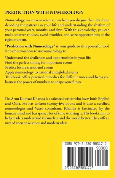 PREDICTION WITH NUMEROLOGY UNLOCK THE SECRETS OF YOUR FUTURE WITH THE POWER OF NUMBERS! Do you ever wonder why some years feel more challenging than others, or why certain days seem destined for success? Have you ever wished you could predict the best time for major life events with precision? Imagine having the ability to forecast your future, not through guesswork, but by harnessing the ancient science of numerology-a guide that empowers you to make smarter decisions, avoid pitfalls, and seize opportunities at the right time. In Prediction with Numerology, you'll discover how to decode the patterns in your life, understand the rhythm of personal years, months, and days, and even predict major events-all without needing a date of birth. This comprehensive guide offers time-tested remedies for challenging years, helps you find the perfect timing for life's most important milestones, and reveals how to apply numerology to the future of entire nations. Here's what you'll explore in this insightful book:Why understanding the future is essential for success and peace of mind. How to calculate your Personal Year and uncover its influence on your goals. The secret formula for determining your Personal Month and Day for precise planning. Remedies for Anti-Years: Turn challenging periods into opportunities for growth. How to predict outcomes even without knowing a birth date-an invaluable tool for businesses and relationships. The art of selecting the most auspicious date for a baby's birth, setting the stage for a bright future. Insights into predicting the future trajectory of a country using numerological principles. Albert Einstein once said, "The only thing we can be sure of about the future is that it will be different." Prediction with Numerology equips you with the tools to navigate that difference with clarity, confidence, and wisdom. Are you ready to unlock your destiny and gain control over your future? Take the first step toward mastering the art of prediction.