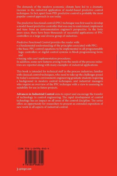 first industrial application of MPC was in 1973. A key motivation was to provide better performance than could be obtained with the widely-used PID controller whilst making it easy to replace the PID controller unit or module with his new algorithm. It was the advent of digital control technology and the use of software control algorithms that made this replacement easier and more acceptable to process engineers. A decade of industrial practice with PFC was reported in the archival literature by Jacques Richalet et al. in 1978 in an important seminal Automatica paper. Around this time, Cutler and Ramaker published the dynamic matrix control algorithm that also used knowledge of future reference signals to determine a sequence of control signal adjustment. Thus, the theoretical and practical development of predictive control methods was underway and subsequent developments included those of generalized predictive control, and the whole armoury of MPC methods. Jacques Richalet's approach to PFC was to seek an algorithm that was: - easy to understand; - easy to install; - easy to tune and optimise. He sought a new modular control algorithm that could be readily used by the control-technician engineer or the control-instrument engineer. It goes without saying that this objective also forms a good market strategy.