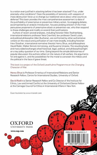 The dramatic declaration by U.S. President George W. Bush that, in light of the attacks on 9/11, the United States would henceforth be engaging in "preemption" against such enemies as terrorists armed with weapons of mass destruction forced a wide-open debate about justifiable uses of military force. Opponents saw the declaration as a direct challenge to the consensus, which has formed since the ratification of the Charter of the United Nations, that armed force may be used only in defense. Supporters responded that in an age of terrorism defense could only mean "preemption." This volume of all-new chapters provides the historical, legal, political, and philosophical perspective necessary to intelligent participation in the on-going debate, which is likely to last long beyond the war in Iraq. Thorough defenses and critiques of the Bush doctrine are provided by the most authoritative writers on the subject from both sides of the Atlantic. Is a nation ever justified in attacking before it has been attacked? If so, under precisely what conditions? Does the possibility of terrorists with weapons of mass destruction force us to change our traditional views about what counts as defense? This book provides the most comprehensive assessment to date of the justifiability of preemptive or preventive military action. Its engaging debate, accompanied by an analytic Introduction, focuses probing criticism against the most persuasive proponents of preemptive attack or preventive war, who then respond to these challenges and modify or extend their justifications. Authors of recent pivotal analyses, including historian Marc Trachtenberg, international relations professor Neta Crawford, law professor David Luban, and political philosopher Allen Buchanan, are confronted by other authoritative writers on the nature and justification of war more broadly, including historian Hew Strachan, international normative theorist Henry Shue, and philosophers David Rodin, Walter Sinnott-Armstrong, and Suzanne Uniacke. The resulting lively and many-sided exchanges shed historical, legal, political, and philosophical light on a key policy question of our time. Going beyond the simple dichotomies of popular discussion the authors reflect on the nature of all warfare, the arguments for and against it, and the possibilities for the moral to constrain the military and the political in the face of grave threat. This book is a project of the Oxford Leverhulme Programme on the Changing Character of War.