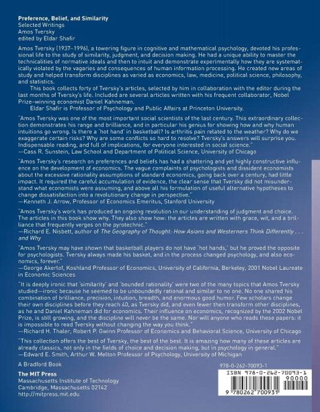 Amos Tversky (1937–1996), a towering figure in cognitive and mathematical psychology, devoted his professional life to the study of similarity, judgment, and decision making. He had a unique ability to master the technicalities of normative ideals and then to intuit and demonstrate experimentally their systematic violation due to the vagaries and consequences of human information processing. He created new areas of study and helped transform disciplines as varied as economics, law, medicine, political science, philosophy, and statistics. This book collects forty of Tversky's articles, selected by him in collaboration with the editor during the last months of Tversky's life. It is divided into three sections: Similarity, Judgment, and Preferences. The Preferences section is subdivided into Probabilistic Models of Choice, Choice under Risk and Uncertainty, and Contingent Preferences. Included are several articles written with his frequent collaborator, Nobel Prize-winning economist Daniel Kahneman.