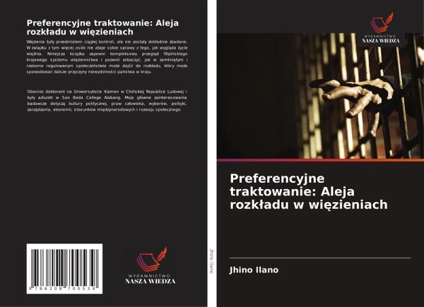 Wi¿zienia by¿y przedmiotem ci¿g¿ej kontroli, ale nie zostäy dok¿adnie zbadane. W zwi¿zku z tym wi¿cej osób nie zdaje sobie sprawy z tego, jak wygl¿da ¿ycie wi¿¿nia. Niniejsza ksi¿¿ka zapewni kompleksowy przegl¿d filipi¿skiego krajowego systemu wi¿ziennictwa i pozwoli zobaczy¿, jak w zamkni¿tym i rzekomo regulowanym spo¿ecze¿stwie mo¿e doj¿¿ do rozk¿adu, który mo¿e spowodowä dalsze przyczyny niewydolno¿ci pästwa w kraju.