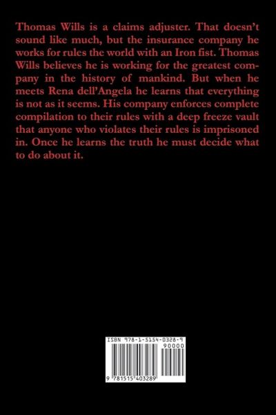 Thomas Wills is a claims adjuster. That doesn't sound like much, but the insurance company he works for rules the world with an Iron fist. Thomas Wills believes he is working for the greatest company in the history of mankind. But when he meets Rena dell'Angela he learns that everything is not as it seems. His company enforces complete compilation to their rules with a deep freeze vault that anyone who violates their rules is imprisoned in. Once he learns the truth he must decide what to do about it.