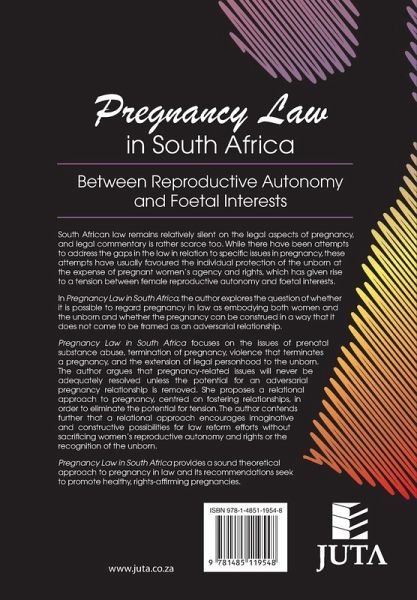 South African law remains relatively silent on the legal aspects of pregnancy, and legal commentary is rather scarce too. While there have been attempts to address the gaps in the law in relation to specifi c issues in pregnancy, these attempts have usually favoured the individual protection of the unborn at the expense of pregnant women’s agency and rights, which has given rise to a tension between female reproductive autonomy and foetal interests. In Pregnancy Law in South Africa, the author explores the question of whether it is possible to regard pregnancy in law as embodying both women and the unborn and whether the pregnancy can be construed in a way that it does not come to be framed as an adversarial relationship. Pregnancy Law in South Africa focuses on the issues of prenatal substance abuse, termination of pregnancy, violence that terminates a pregnancy, and the extension of legal personhood to the unborn. The author argues that pregnancy-related issues will never be adequately resolved unless the potential for an adversarial pregnancy relationship is removed. She proposes a relational approach to pregnancy, centred on fostering relationships, in order to eliminate the potential for tension. The author contends further that a relational approach encourages imaginative and constructive possibilities for law reform efforts without sacrifi cing women’s reproductive autonomy and rights or the recognition of the unborn. Pregnancy Law in South Africa provides a sound theoretical approach to pregnancy in law and its recommendations seek to promote healthy, rights-affi rming pregnancies.