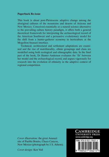 This book is about post-Pleistocene adaptive change among the aboriginal cultures of the mountains and deserts of Arizona and New Mexico. Conceived essentially as a natural science alternative to the prevailing culture history paradigm, it offers both a general theoretical framework for interpreting the archaeological record of the American South-West and a persuasive evolutionary model for the shift from a hunter-gatherer economy to horticulture at the Mogollon/Anasazi interface. Technical, architectural and settlement adaptations are examined and the rise of matrilineality, ethnic groupings and clans are modelled using ecological and ethnographic data and the innovative idea of anticipated cultural response. In the last part of the book, Dr Hunter-Anderson evaluates the 'fit' between her model and the archaeological record and argues vigorously for research into the evolution of ethnicity in the adaptive context of regional competition.