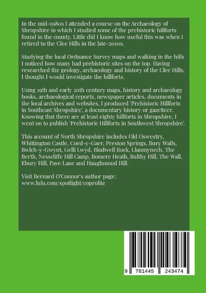 In the mid-1980s I attended a course on the Archaeology of Shropshire in which I studied some of the prehistoric hillforts found in the county. Little did I know how useful this was when I retired to the Clee Hills in the late-2010s. Studying the local Ordnance Survey maps and walking in the hills of Southeast Shropshire I noticed how many had prehistoric sites on the top. Having researched the geology, archaeology and history of the Clee Hills, I thought I would investigate the hillforts. Using 19th and early 20th century maps, history and archaeology books, archaeological reports, newspaper articles, documents in the local archives and websites, I produced 'Prehistoric Hillforts in Southeast Shropshire', a documentary history or gazetteer. Knowing that there are at least eighty hillforts in Shropshire, I went on to publish 'Prehistoric Hillforts in Southwest Shropshire'. This account of North Shropshire includes Old Oswestry, Whittington Castle, Coed-y-Gaer, Preston Springs, Bury Walls, Bwlch-y-Gwynt, Gelli Lwyd, Blodwell Rock, Llanmynech, The Berth, Nesscliffe Hill Camp, Bomere Heath, Bulthy Hill, The Wall, Ebury Hill, Pave Lane and Haughmond Hill.