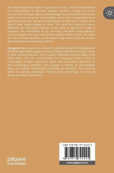 Chapter 1. Introduction.- Chapter 2. Theoretical Explanation for the Origin of Agriculture.- Chapter 3. Theoretical Explanation: Why Agriculture Did Not Originate.- Chapter 4. A Simulation Study of Chinese Hunter-Gatherer.- Chapter 5. Accumulation of Resource Endowment.- Chapter 6. Initial Environmental Conditions.- Chapter 7. The Basic Model of the Origin of Chinese Agriculture.- Chapter 8. Southern and Northern Areas of Yan Shan Mountain.- Chapter 9. South China Northeast China.- Chapter 10. Southwest China.- Chapter 11. Who Colonized the Tibetan Plateau.- Chapter 12.Conclusion: Completed and Unfinished Issues.