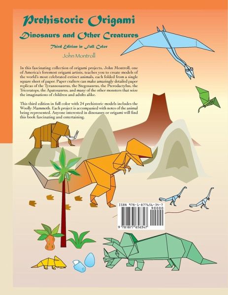 In this fascinating collection of origami projects, John Montroll, one of America’s foremost origami artists, teaches you to create models of the world’s most celebrated extinct animals, each folded from a single square sheet of paper. Paper crafters can make amazingly detailed paper replicas of the Tyrannosaurus, the Stegosaurus, the Pterodactylus, the Triceratops, the Apatosaurus, and many of the other monsters that seize the imaginations of children and adults alike. This third edition in full color with 24 prehistoric models includes the Woolly Mammoth. Each project is accompanied with notes of the animal being represented. Anyone interested in dinosaurs or origami will find this book fascinating and entertaining.