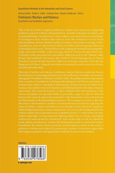 Introduction.- Chapter 1. Interdisciplinary approaches to prehistoric warfare and violence: Past, present, and future.- Chapter 2. Patterns of Collective Violence in the Early Neolithic of Central Europe.- Chapter 3. Perimortem lesions on human bones from the Bronze Age battlefield in the Tollense Valley: An interdisciplinary approach.- Chapter 4. Martial practices and warrior burials: Humeral asymmetry and grave goods in Iron Age male inhumations from central Italy.- Chapter 5. War and peace in Iberian prehistory: the chronology and interpretation of the depictions of violence in Levantine rock art.- Chapter 6. Fast like a war canoe: Pragmamorphism in Scandinavian rock art.- Chapter 7. "In the beginning there was the spear": Digital documentation sheds new light on Early Bronze Age spear carvings from Sweden.- Chapter 8. Rock art, secret societies, long-distance exchange, and warfare in Bronze Age Scandinavia.- Chapter 9. Body armour in the European Bronze Age.- Chapter 10. Conflict at Europe's crossroads: Analysing the social life of metal weaponry in the Bronze Age Balkans.- Chapter 11. Ritual or lethal? Bronze weapons in late Shang China.- Chapter 12. Standardised manufacture of Iron Age weaponry from Southern Scandinavia: Constructing and provenancing the Havor lance.- Chapter 13. An experimental approach to prehistoric violence and warfare?- Chapter 14. Value, craftsmanship and use in Late Bronze Age cuirasses.- Chapter 15. Untangling Bronze Age warfare: The case of Argaric society.- Chapter 16.The science of conflict.