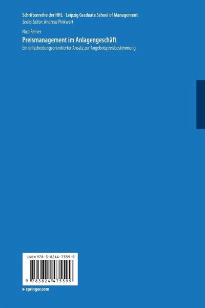 Die zahlreichen Spezifika des Anlagengeschäfts verhindern in der Regel den Einsatz bekannter Konzepte für das Preismanagement, so können z.B. wegen der Individualität der Leistungen und wegen der fehlenden Preis-Absatz-Funktion die von der Wissenschaft für andere Bereiche präferierten quantitativen Ansätze nicht angewandt werden.