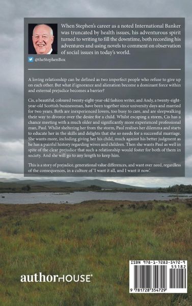 A loving relationship can be defined as two imperfect people who refuse to give up on each other. But what if ignorance and alienation become a dominant force within and external prejudice becomes a barrier? Cis, a beautiful, coloured twenty-eight-year-old fashion writer, and Andy, a twenty-eight-year-old Scottish businessman, have been together since university days and married for two years. Both are inexperienced lovers, too busy to care, and are sleepwalking their way to divorce over the desire for a child. Whilst escaping a storm, Cis has a chance meeting with a much older and significantly more experienced professional man, Paul. Whilst sheltering her from the storm, Paul realises her dilemma and starts to educate her in the skills and delights that she so needs for a successful marriage. She wants more, including giving her his child, much against his better judgment as he has a painful history regarding wives and children. Then she wants Paul as well in spite of the clear prejudice that such a relationship would foster for both of them in society. And she will go to any length to keep him. This is a story of prejudice, generational value differences, and want over need, regardless of the consequences, in a culture of 'I want it all, and I want it now'.