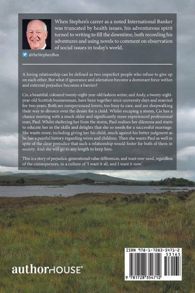 A loving relationship can be defined as two imperfect people who refuse to give up on each other. But what if ignorance and alienation become a dominant force within and external prejudice becomes a barrier? Cis, a beautiful, coloured twenty-eight-year-old fashion writer, and Andy, a twenty-eight-year-old Scottish businessman, have been together since university days and married for two years. Both are inexperienced lovers, too busy to care, and are sleepwalking their way to divorce over the desire for a child. Whilst escaping a storm, Cis has a chance meeting with a much older and significantly more experienced professional man, Paul. Whilst sheltering her from the storm, Paul realises her dilemma and starts to educate her in the skills and delights that she so needs for a successful marriage. She wants more, including giving her his child, much against his better judgment as he has a painful history regarding wives and children. Then she wants Paul as well in spite of the clear prejudice that such a relationship would foster for both of them in society. And she will go to any length to keep him. This is a story of prejudice, generational value differences, and want over need, regardless of the consequences, in a culture of 'I want it all, and I want it now'.