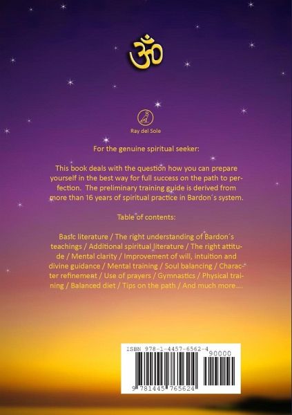 For the genuine spiritual seeker: This book deals with the question how you can prepare yourself in the best way for full success on the path to perfection. The preliminary training guide is derived from more than 16 years of spiritual practice in Bardon¿s system. Table of contents: Basic literature / The right understanding of Bardon¿s teachings / Additional spiritual literature / The right attitude / Mental clarity / Improvement of will, intuition and divine guidance / Mental training / Soul balancing / Character refinement / Use of prayers / Gymnastics / Physical training / Balanced diet / Tips on the path / And much more...
