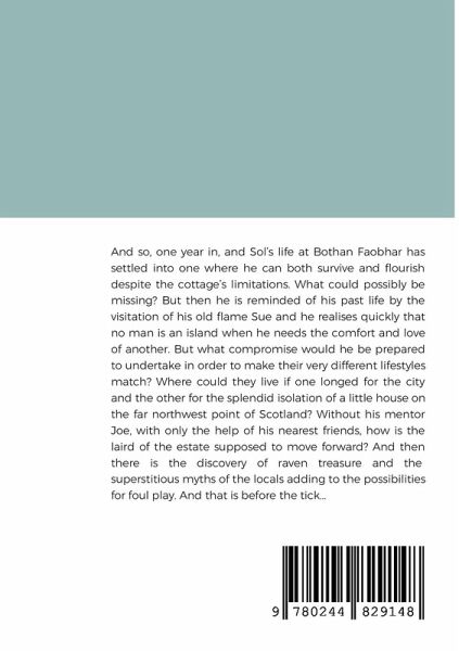 One year in and Sol's life at Bothan Faobhar has settled into one where he can both survive and flourish despite the cottage's limitations. What could possibly be missing? But then he is reminded of his past life by the visitation of his old flame Sue and he realises quickly that no man is an island when he needs the comfort and love of another. But what compromise would he be prepared to undertake in order to make their very different lifestyles match? Where could they live if one longed for the city and the other for isolation? Without his mentor Joe, with only the help of his nearest friends, how is the laird of the estate supposed to move on? And then there is the discovery of raven treasure and the superstitious myths of the locals adding to the possibilities for foul play. And that is before the tick... This is the continued story of Sol. It is about the reality of rural life, traditions and folklore. But it is also about a man who is unsure how to compromise on the things he cares about most.