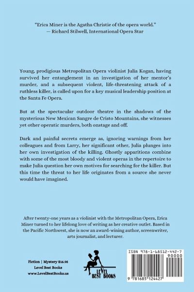 Young, prodigious Metropolitan Opera violinist Julia Kogan, having survived her entanglement in an investigation of her mentor's murder and a subsequent violent, life-threatening attack of a ruthless killer, is called upon for a key musical leadership position at the Santa Fe Opera. But at the spectacular outdoor theatre in the shadows of the mysterious New Mexican Sangre de Cristo Mountains, she witnesses yet other operatic murders, both onstage and off. Dark and painful secrets emerge as, ignoring warnings from her colleagues and from Larry, her significant other, Julia plunges into her own investigation of the killing. Ghostly apparitions combine with some of the most bloody and violent operas in the repertoire to make Julia question her own motives for searching for the killer. But this time, the threat to her life originates from a source she never would have imagined.