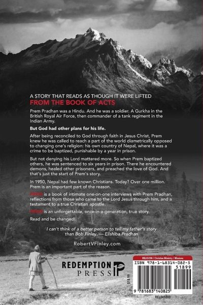 A STORY THAT READS AS THOUGH IT WERE LIFTED FROM THE BOOK OF ACTS Prem Pradhan was a Hindu. And he was a soldier. A Gurkha in the British Royal Air Force, then commander of a tank regiment in the Indian army. But God had other plans for his life. After being reconciled to God through faith in Jesus Christ, Prem knew he was called to reach a part of the world diametrically opposed to changing one's religion: his own country of Nepal, where it was a crime to be baptized, punishable by a year in prison. But not denying his Lord mattered more. So when Prem baptized others, he was sentenced to six years in prison. There he encountered demons, healed other prisoners, and preached the love of God. And that's just the start of Prem's story. In 1950, Nepal had few known Christians. Today? Over one million. Prem is an important part of the reason. PREM is a book of intimate one-on-one interviews with Prem Pradhan, reflections from those who came to the Lord Jesus through him, and a testament to a true Christian apostle. PREM is an unforgettable, once-in-a-generation true story. Read and be changed! I can't think of a better person to tell my father's story than Bob Finley. -Elishiba Pradhan
