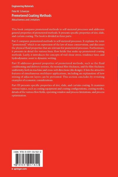 This book compares premetered methods to self-metered processes and addresses general properties of premetered methods. It presents specific properties of slot, slide, and curtain coating. The book is divided in three parts:
