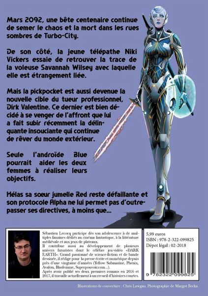 Mars 2092, une bête centenaire continue de semer le chaos et la mort dans les rues sombres de Turbo-City.De son côté, la jeune télépathe Niki Vickers essaie de retrouver la trace de la voleuse Savannah Wilsey avec laquelle elle est étrangement liée.Mais la pickpocket est aussi devenue la nouvelle cible du tueur professionnel, Dirk Valentine. Ce dernier est bien décidé à se venger de l'affront que lui a fait subir récemment la délinquante insouciante qui continue de rêver du monde extérieur.Seule l'androïde Blue pourrait aider les deux femmes à réaliser leurs objectifs.Hélas, sa soeur jumelle Red reste défaillante et son protocole Alpha ne lui permet pas d'outrepasser ses directives, à moins que...