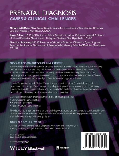 PRENATAL DIAGNOSIS CASES & CLINICAL CHALLENGES How can prenatal testing help your patients? In utero diagnosis has undergone an amazing revolution in recent years. More tests are available; the indications for prenatal diagnosis have expanded - you can now advise your patients about disorders you could not have previously detected. Medical training for obstetricians, medical geneticists, and genetic counselors has not kept pace with these developments. Clinical exposure to common and unusual problems in prenatal diagnosis is limited. Prenatal Diagnosis: Cases & Clinical Challenges, based on the authors' several decades of experiences, fills this gap. Real cases portray diagnostic problems as a route to the underlying biology, the available testing options, and the results that might be obtained. The authors discuss the challenges of management, interpretation, and counseling. Cases used throughout emphasize three types of clinical problems: * Chromosomal abnormalities * Mendelian disorders * Fetal structural abnormalities The decision to enter the world of prenatal diagnosis should be very carefully considered by any prospective mother. Prenatal Diagnosis: Cases & Clinical Challenges will help you discuss the issues in an informed manner with your patients. TITLES OF RELATED INTEREST Genetic Disorders and the Fetus: Diagnosis, Prevention and Treatment, 6e Aubrey Milunsky and Jeff Milunsky; ISBN 978-1-4051-9087-9
