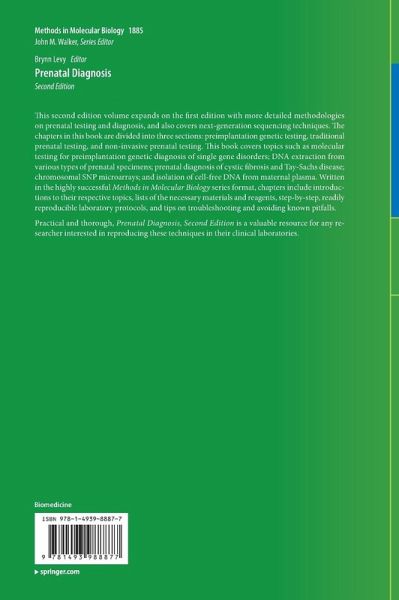 This second edition volume expands on the first edition with more detailed methodologies on prenatal testing and diagnosis, and also covers next-generation sequencing techniques. The chapters in this book are divided into three sections: preimplantation genetic testing, traditional prenatal testing, and non-invasive prenatal testing. This book covers topics such as molecular testing for preimplantation genetic diagnosis of single gene disorders; DNA extraction from various types of prenatal specimens; prenatal diagnosis of cystic fibrosis and Tay-Sachs disease; chromosomal SNP microarrays; and isolation of cell-free DNA from maternal plasma. Written in the highly successful Methods in Molecular Biology series format, chapters include introductions to their respective topics, lists of the necessary materials and reagents, step-by-step, readily reproducible laboratory protocols, and tips on troubleshooting and avoiding known pitfalls.