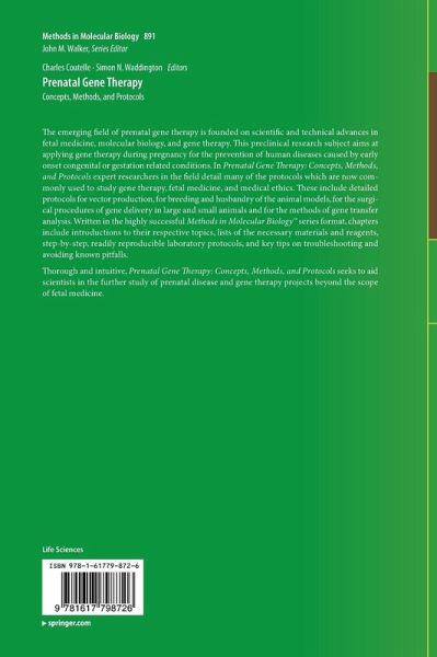 Thorough and intuitive, Prenatal Gene Therapy: Concepts, Methods and Protocols seeks to aid scientists in the further study of prenatal disease and gene therapy projects beyond the scope of fetal medicine.