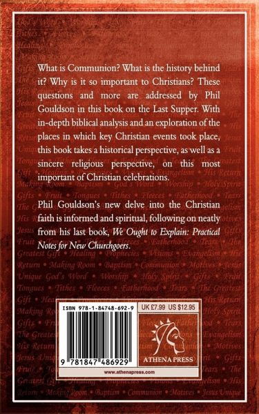 What is Communion? What is the history behind it? Why is it so important to Christians? These questions and more are addressed by Phil Gouldson in this book on the Last Supper. With in-depth biblical analysis and an exploration of the places in which key Christian events took place, this book takes a historical perspective, as well as a sincere religious perspective, on this most important of Christian celebrations. Phil Gouldson's new delve into the Christian faith is informed and spiritual, following on neatly from his last book, We Ought to Explain: Practical Notes for New Churchgoers.