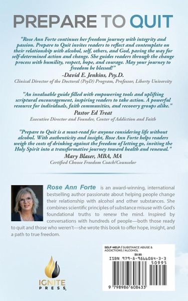 Find the keys to your freedom! Quitting alcohol isn't something you rush into; it's something you prepare for. That's what this book is designed to help you do-prepare, step by step, until you're ready to say goodbye to alcohol and hello to the Spirit-filled life God has for you. Throughout this book, you'll discover eight keys, each one unlocking a specific area of your life that needs attention, healing, or transformation. These keys are practical, spiritual, rooted in biblical truths, and scientifically proven strategies to prepare you to quit. Find the keys to your freedom-not just freedom from alcohol but freedom to live the life God designed for you.