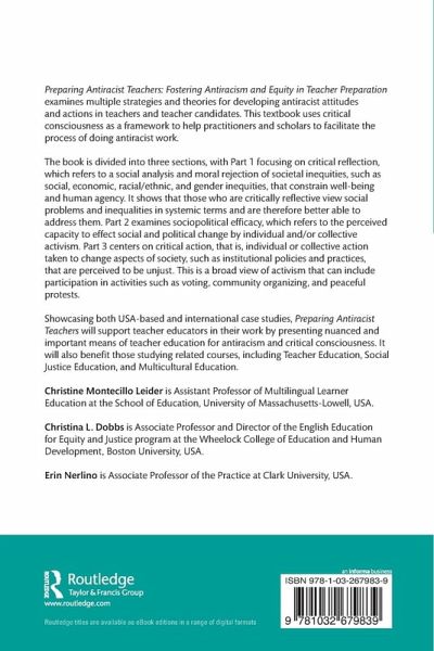 Showcasing both USA-based and international case studies, Preparing Antiracist Teachers will support teacher educators in their work by presenting nuanced and important means of teacher education for antiracism and critical consciousness. It will also benefit those studying related courses, including Teacher Education, Social Justice Education, and Multicultural Education.