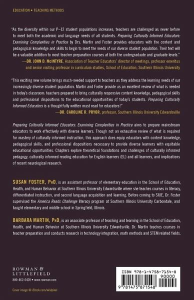 Preparing Culturally Informed Educators: Examining Complexities in Practice aims to prepare mainstream educators to work effectively with diverse learners. Though not an exhaustive review of what is required for mastery of culturally informed instruction, this approach does equip educators with content knowledge, pedagogical skills, and professional dispositions necessary to provide diverse learners with equitable educational opportunities. Chapters explore theoretical foundations and challenges of culturally informed pedagogy, culturally informed reading education for English learners (EL) and all learners, and implications of recent neurological research.