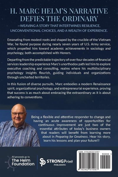 One step at a time... Running a business can be a long, winding road filled with pitfalls and detours. Too many business owners try to achieve success by figuring out the process on their own, asking the wrong individuals for advice, or hiring teams of experts to run the business for them. But very rarely do any of these options lead to long-term success. The truth is, business really isn't that complicated-we just make it seem like it is. There are certain behaviors and routines that, when done consistently at all levels of the organization, will undoubtedly lead to overall success. The key element is focusing on the business fundamentals rather than chasing the next best thing. In Marc's four plus decades of management and leadership experience, there is not a mistake or misstep he has not witnessed or even made himself. He has been fortunate enough to have built and sold several companies from the ground up. Now, he gets to apply the lessons learned in the process to help others do the same in their own businesses. Preparing for Greatness is more than a book; it is your road map to success in business and hopefully will result in you avoiding many detours and obstacles.