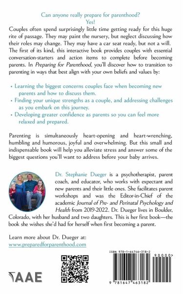 Couples often spend surprisingly little time getting ready for the huge rite of passage of parenting. During pregnancy, they may paint the nursery, but neglect discussing how their roles may change. They may have a car seat ready, but not a will. The first of its kind, this interactive book provides couples with 55 essential conversation-starters and action items to complete while expecting their baby, using their own beliefs and values. They'll learn the biggest concerns for new parents, find their unique strengths as a couple, and develop greater confidence in the transition to becoming parents. Parenting is simultaneously heart-opening and heart-wrenching, humbling and humorous, joyful and overwhelming. But this small and indispensable book will help expectant and new parents alleviate stress and answer some of the biggest questions they'll want to address before their baby arrives.