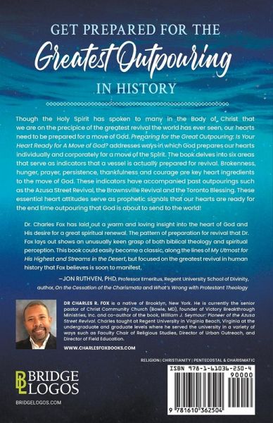 Though the Holy Spirit has spoken to many in the Body of Christ that we are on the precipice of the greatest revival the world has ever seen, our hearts need to be prepared for a move of God. Preparing for the Great Outpouring: Is Your Heart Ready for A Move of God? addresses ways in which God prepares our hearts individually and corporately for a move of the Spirit. The book delves into six areas that serve as indicators that a vessel is actually prepared for revival. * Brokenness * Hunger * Prayer * Persistence * Thankfulness * Courage These are the key heart ingredients to the move of God. These indicators have accompanied past outpourings such as the Azusa Street Revival, the Brownsville Revival and the Toronto Blessing. These essential heart attitudes serve as prophetic signals that our hearts are ready for the end time outpouring that God is about to send to the world!