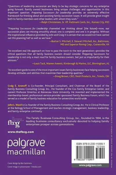 'Preparing Successors for Leadership is an excellent guide to one of the most important issues family businesses face helping successors develop attitudes and abilities that maximize their leadership qualities.' - Doug Brown, CEO, Fresh Products, Inc., Toledo, OH