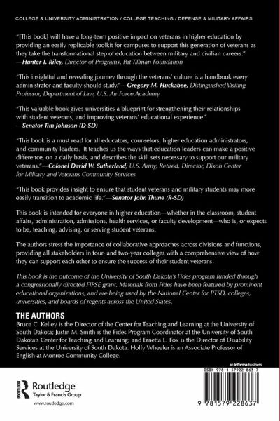 This book is intended for everyone in higher education - whether in the classroom, student affairs, administration, admissions, health services or faculty development - who is, or expects to be teaching, advising, or serving student veterans.