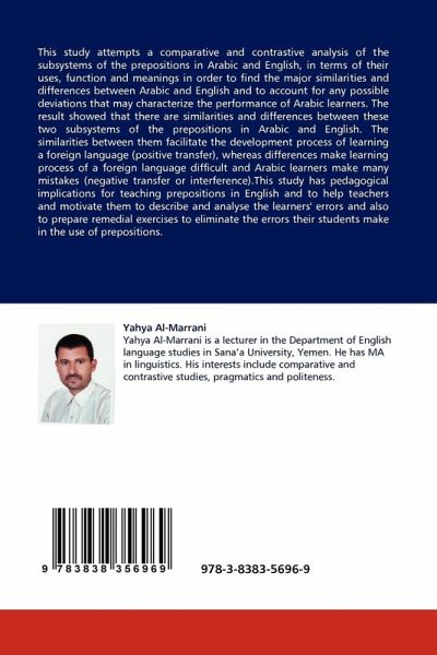 This study attempts a comparative and contrastive analysis of the subsystems of the prepositions in Arabic and English, in terms of their uses, function and meanings in order to find the major similarities and differences between Arabic and English and to account for any possible deviations that may characterize the performance of Arabic learners. The result showed that there are similarities and differences between these two subsystems of the prepositions in Arabic and English. The similarities between them facilitate the development process of learning a foreign language (positive transfer), whereas differences make learning process of a foreign language difficult and Arabic learners make many mistakes (negative transfer or interference).This study has pedagogical implications for teaching prepositions in English and to help teachers and motivate them to describe and analyse the learners' errors and also to prepare remedial exercises to eliminate the errors their students make in the use of prepositions.
