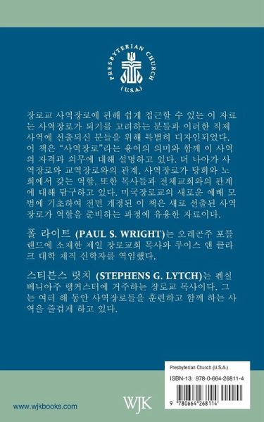 This is the Korean translation of a bestselling Presbyterian resource. This accessible resource on the Presbyterian ruling elder is especially designed for those considering becoming ruling elders and those who have been elected to this ordered ministry. It explains the meaning of the term "ruling elder" and the qualifications and duties of this ministry. The book goes on to explore the relationship of ruling elders to other elders, the role of the ruling elder on session and in the presbytery, and the relationships to pastors and to the whole church. ¿Fully revised based on the new Form of Government of the Presbyterian Church (U.S.A.), this book is invaluable for new ruling elders preparing for their role.
