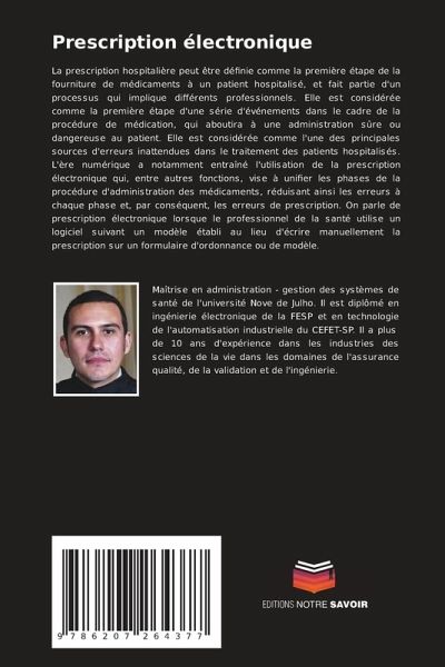 La prescription hospitalière peut être définie comme la première étape de la fourniture de médicaments à un patient hospitalisé, et fait partie d'un processus qui implique différents professionnels. Elle est considérée comme la première étape d'une série d'événements dans le cadre de la procédure de médication, qui aboutira à une administration sûre ou dangereuse au patient. Elle est considérée comme l'une des principales sources d'erreurs inattendues dans le traitement des patients hospitalisés. L'ère numérique a notamment entraîné l'utilisation de la prescription électronique qui, entre autres fonctions, vise à unifier les phases de la procédure d'administration des médicaments, réduisant ainsi les erreurs à chaque phase et, par conséquent, les erreurs de prescription. On parle de prescription électronique lorsque le professionnel de la santé utilise un logiciel suivant un modèle établi au lieu d'écrire manuellement la prescription sur un formulaire d'ordonnance ou de modèle.