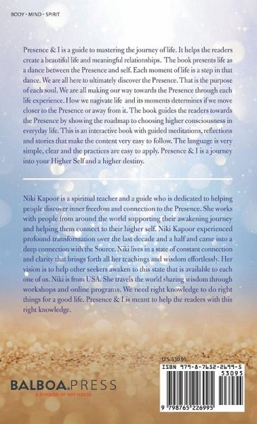 Presence & I is a guide to mastering the journey of life. It helps the readers create a beautiful life and meaningful relationships. The book presents life as a dance between the Presence and self. Each moment of life is a step in that dance. We are all here to ultimately discover the Presence. That is the purpose of each soul. We are all making our way towards the Presence through each life experience. How we nagivate life and its moments determines if we move closer to the Presence or away from it. The book guides the readers towards the Presence by showing the roadmap to choosing higher consciousness in everyday life. This is an interactive book with guided meditations, reflections and stories that make the content very easy to follow. The language is very simple, clear and the practices are easy to apply. Presence & I is a journey into your Higher Self and a higher destiny.
