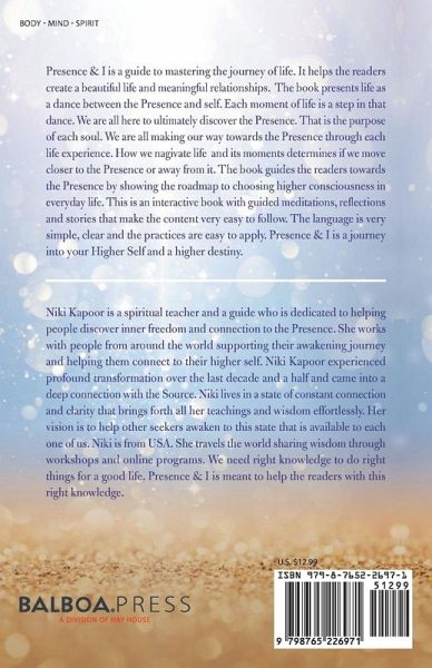 Presence & I is a guide to mastering the journey of life. It helps the readers create a beautiful life and meaningful relationships. The book presents life as a dance between the Presence and self. Each moment of life is a step in that dance. We are all here to ultimately discover the Presence. That is the purpose of each soul. We are all making our way towards the Presence through each life experience. How we nagivate life and its moments determines if we move closer to the Presence or away from it. The book guides the readers towards the Presence by showing the roadmap to choosing higher consciousness in everyday life. This is an interactive book with guided meditations, reflections and stories that make the content very easy to follow. The language is very simple, clear and the practices are easy to apply. Presence & I is a journey into your Higher Self and a higher destiny.