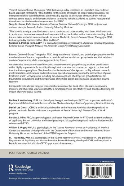 Present-Centered Group Therapy for PTSD integrates theory, research, and practical perspectives on the manifestations of trauma, to provide an accessible, evidence-informed group treatment that validates survivors' experiences while restoring present-day focus.