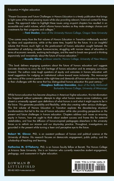 Present Successes and Future Challenges in Honors Education documents the decades-long structural transformations that led to the rise of honors education while also providing perspective on the present and future challenges in honors education. The chapters address such issues as ensuring equity in honors, how we ought to think about student success and frame this for external stakeholders, and how the diffusion of honors-inspired pedagogies elsewhere in the university forces us to rethink our mission and our day-to-day practice. Throughout, their investigations are grounded in the present while turning a keen and perceptive eye to the future.