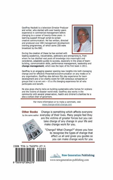 Geoffrey Hackett is a television Director Producer and writer, who started with over twenty years experience in commercial management before changing to a career of twenty-three years in learning support through script-to-screen creative communication. He has written, directed and produced over 400 management development training programmes, of which some 250 were broadcast by the BBC. During the creation of these he has worked with leading academics, industrialists, politicians and entrepreneurs, from whom he has distilled vast pools of knowledge into meaningful and considered, adaptable guides to success, especially in the areas of team-building, communication skills, performance management, leadership and change management; which was the topic of his first book in 2011. Geoffrey is an engaging speaker opening new insights into both managing change and for effective Presentation/communication on any media or in any organisation. Geoffrey also delivers film day experience for team development and a fun charity event for CSR conscious companies or groups that is so win win - it's a life changing experience for all who participate and benefit. He also gives charity talks on building sustainable echo homes for orphans and the victims of disaster world wide. Geoffrey also works in the community with several preservation, health and children's charities he is also a school chair of governors.