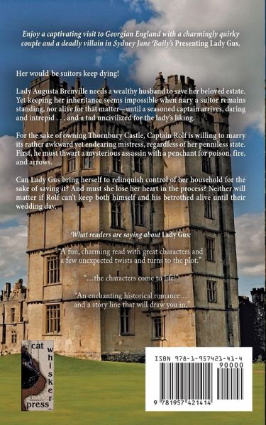 Her would-be suitors keep dying! Lady Augusta Brenville needs a wealthy husband to save her beloved estate. Yet keeping her inheritance seems impossible when nary a suitor remains standing, nor alive for that matter-until a seasoned captain arrives, daring and intrepid . . . and a tad uncivilized for the lady's liking. For the sake of owning Thornbury Castle, Captain Rolf is willing to marry its rather awkward yet endearing mistress, regardless of her penniless state. First, he must thwart a mysterious assassin with a penchant for poison, fire, and arrows. Can Lady Gus bring herself to relinquish control of her household for the sake of saving it? And must she lose her heart in the process? Neither will matter if Rolf can't keep both himself and his betrothed alive until their wedding day. Enjoy a captivating visit to Georgian England with a charmingly quirky couple and a deadly villain in USA Today's bestselling author Sydney Jane Baily's Presenting Lady Gus.